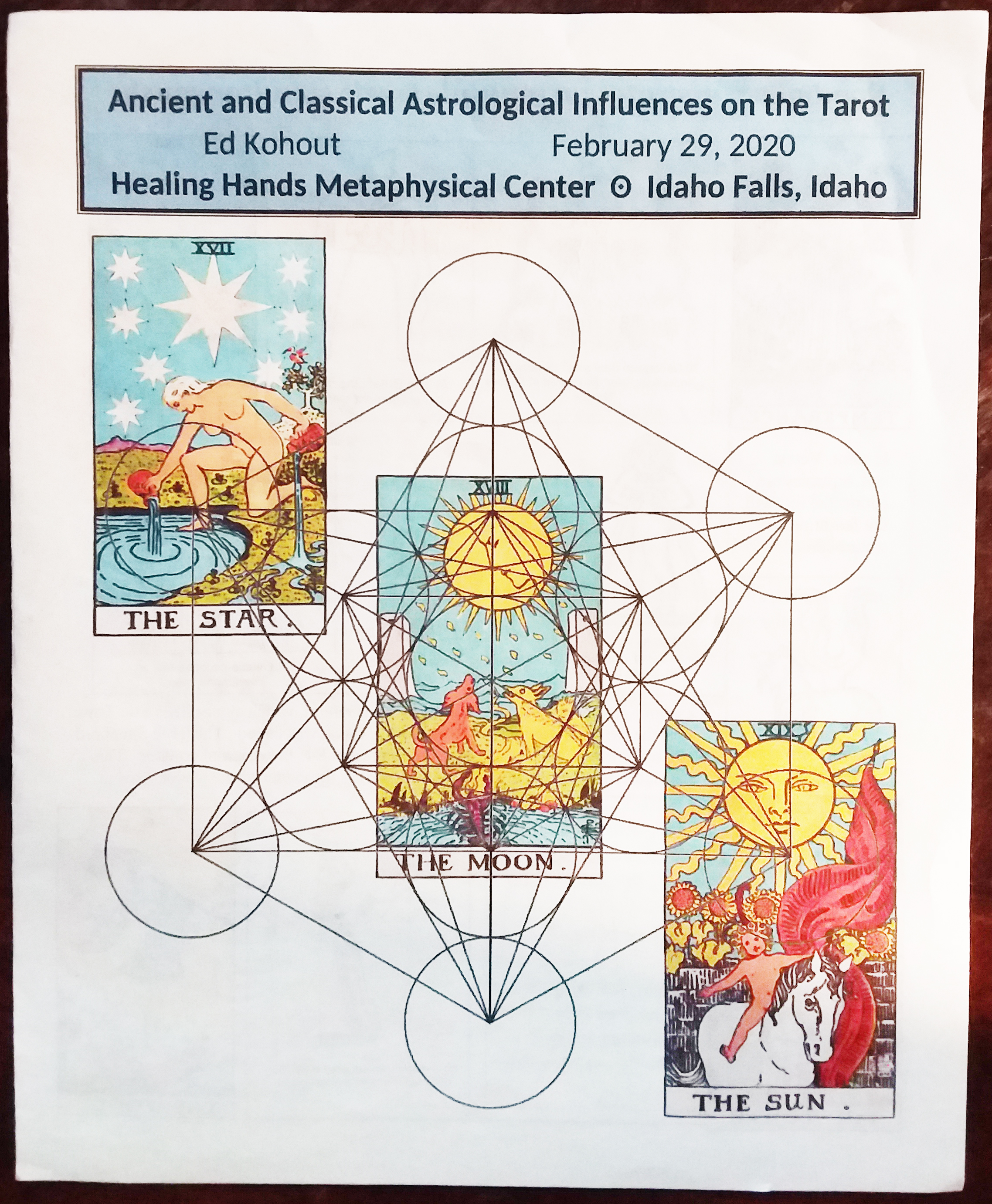 In any event, Terri let me do a presentation at her store on February 29, 2020, a rare “leap day,” about my take on the astrological foundation of the tarot deck. About 10 people showed up. I met some other folks in the local scene, notably the person who would become The Metaphysical Times’ webmaster, Michelle Norton.