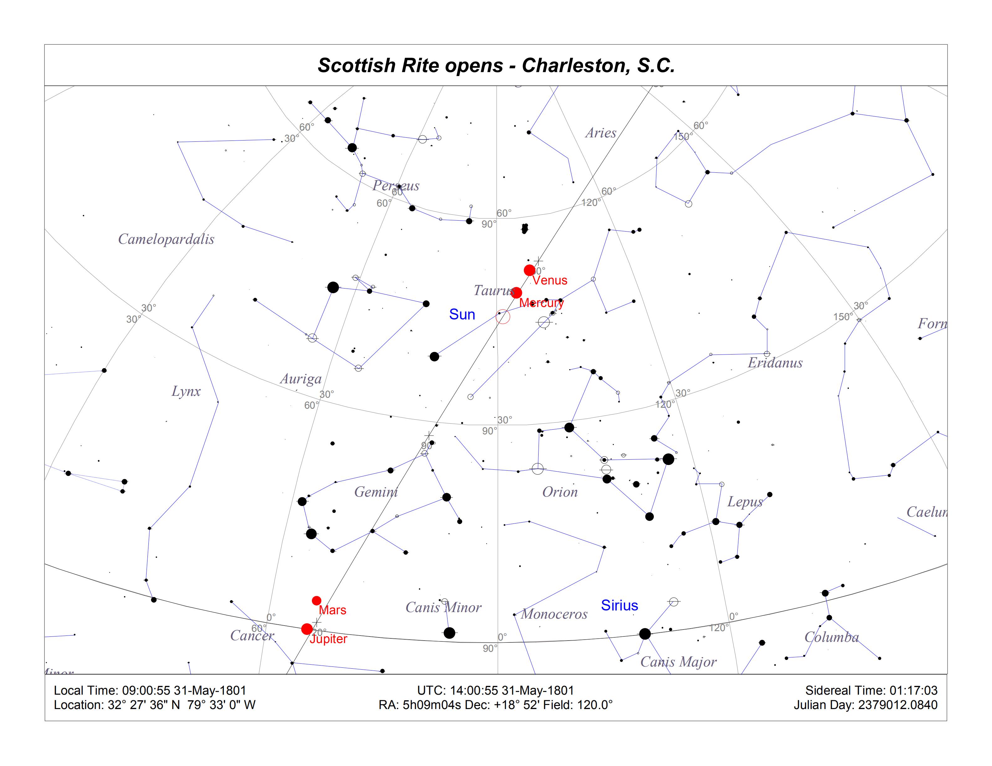 As we learned in the 9/11 series, the Scottish Rite began on the very day that Jupiter co-rose with the star Sirius at the latitude of Charleston: