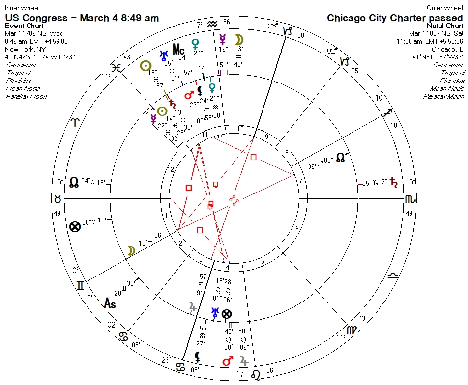 12 years prior to that, nearly, the Federal government began in 1789 on March 4. The table below shows that the Chicago City Charter is aligned with that simple Jupiter pattern, and also is on the anniversary of the first day of our Federal Government: