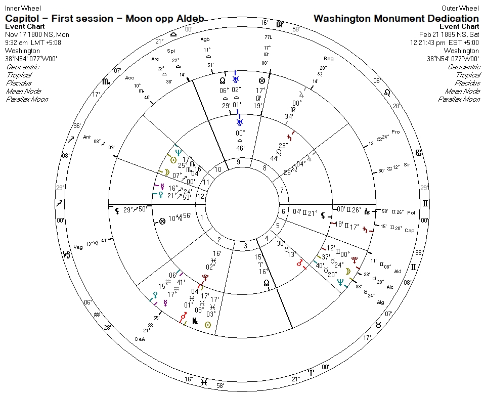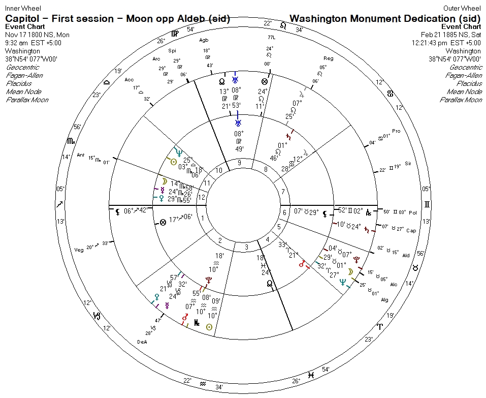 What are the odds of all these chart-moments being coincidental? Not much. And there’s more. (There’s always more.) If we construct a bi-wheel for Congress’ first DC session with the dedication of the WM, we get this: