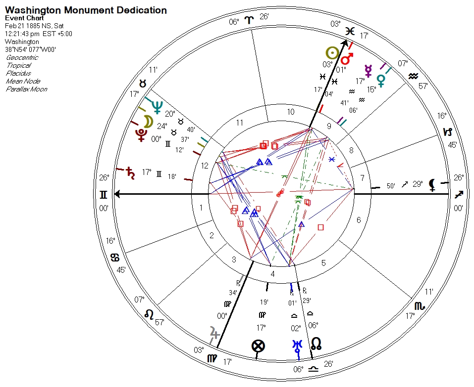 Nothing comes closer to achieving that than the Washington Monument in the USA’s capital. Not only is it a tribute to the fellow who led the Revolutionary Army to victory, it is also a monument to the temporal and physical state in which the USA claimed its place. As such, there are attendant astrological dimensions to this structure, and we will explore those here.