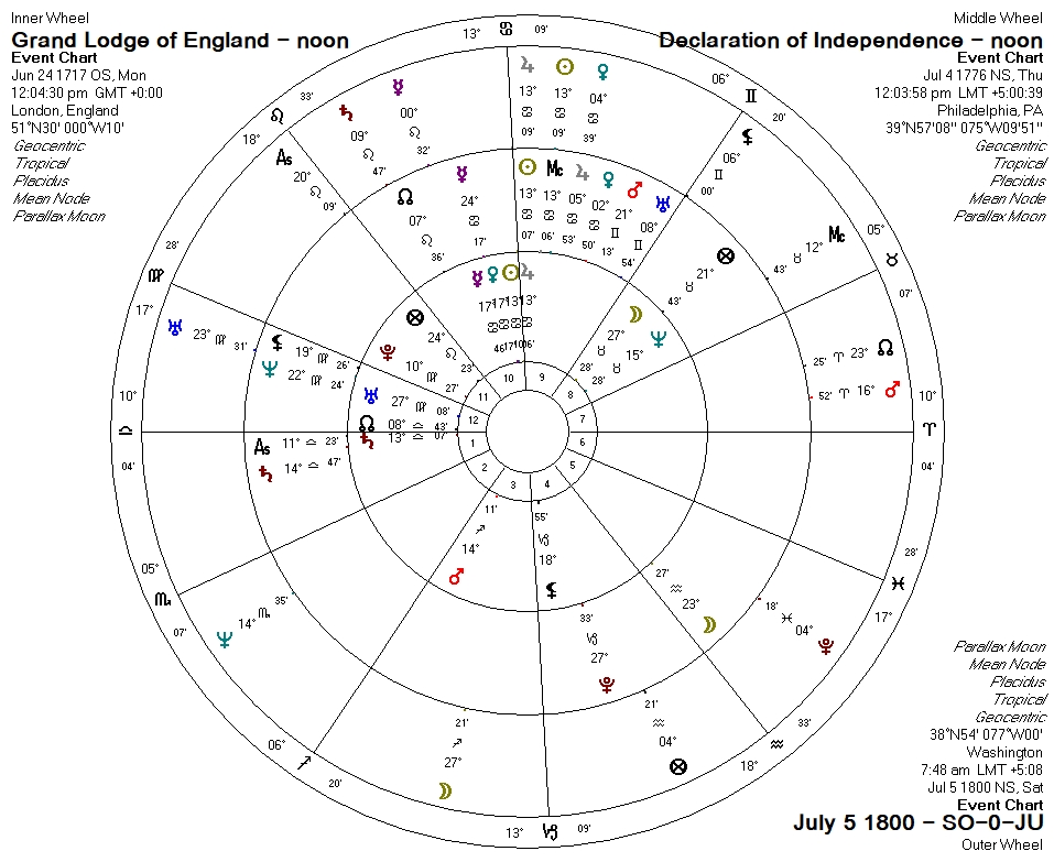 | Final draft – Declaration of Independence – July 4, 1776 | Sun conjunct 1717 Grand Lodge Sun-Jupiter |