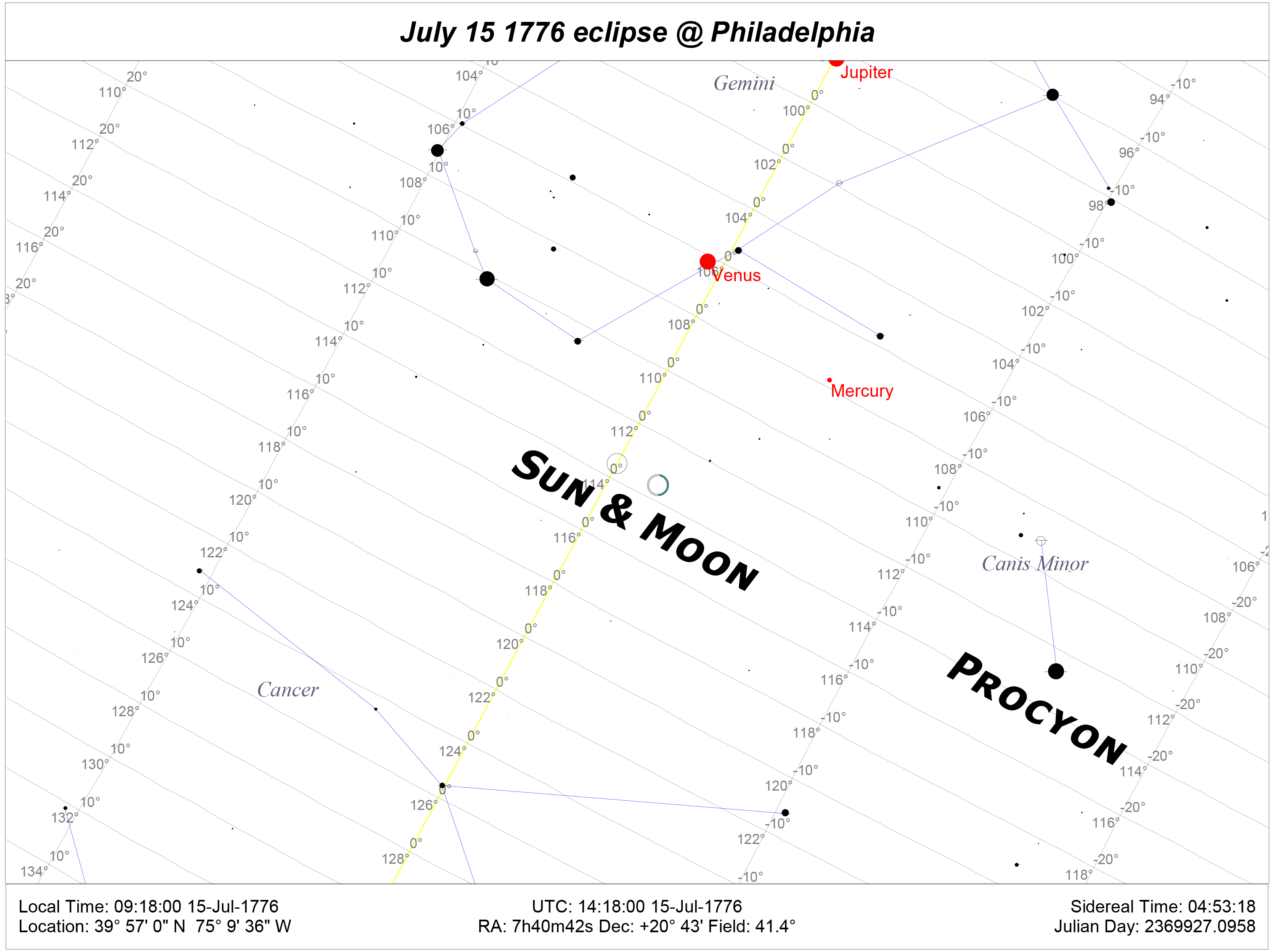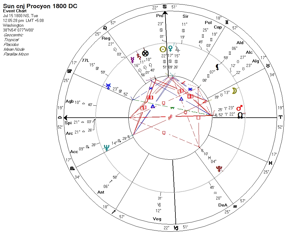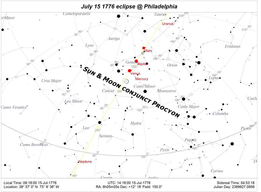As it happens, July 15 of 1776 was the date of a solar eclipse, and it was conjunct Procyon, the Little Dog:
