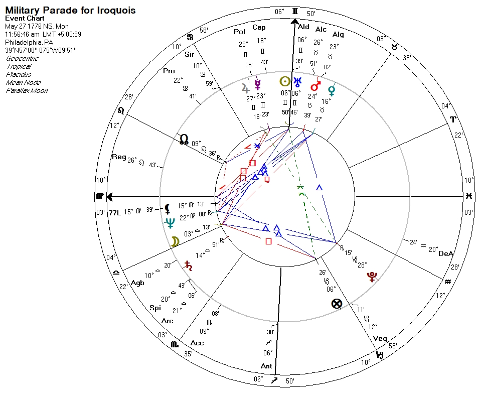 | Military Parade for Iroqouis – May 27, 1776 | Sun conjunct Aldebaran |
