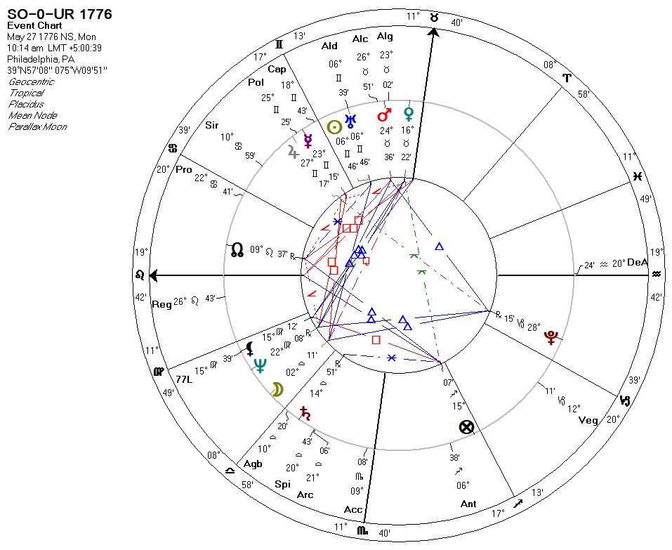 | Unanimity finally achieved – July 15, 1776 | Sun conjunct Procyon |