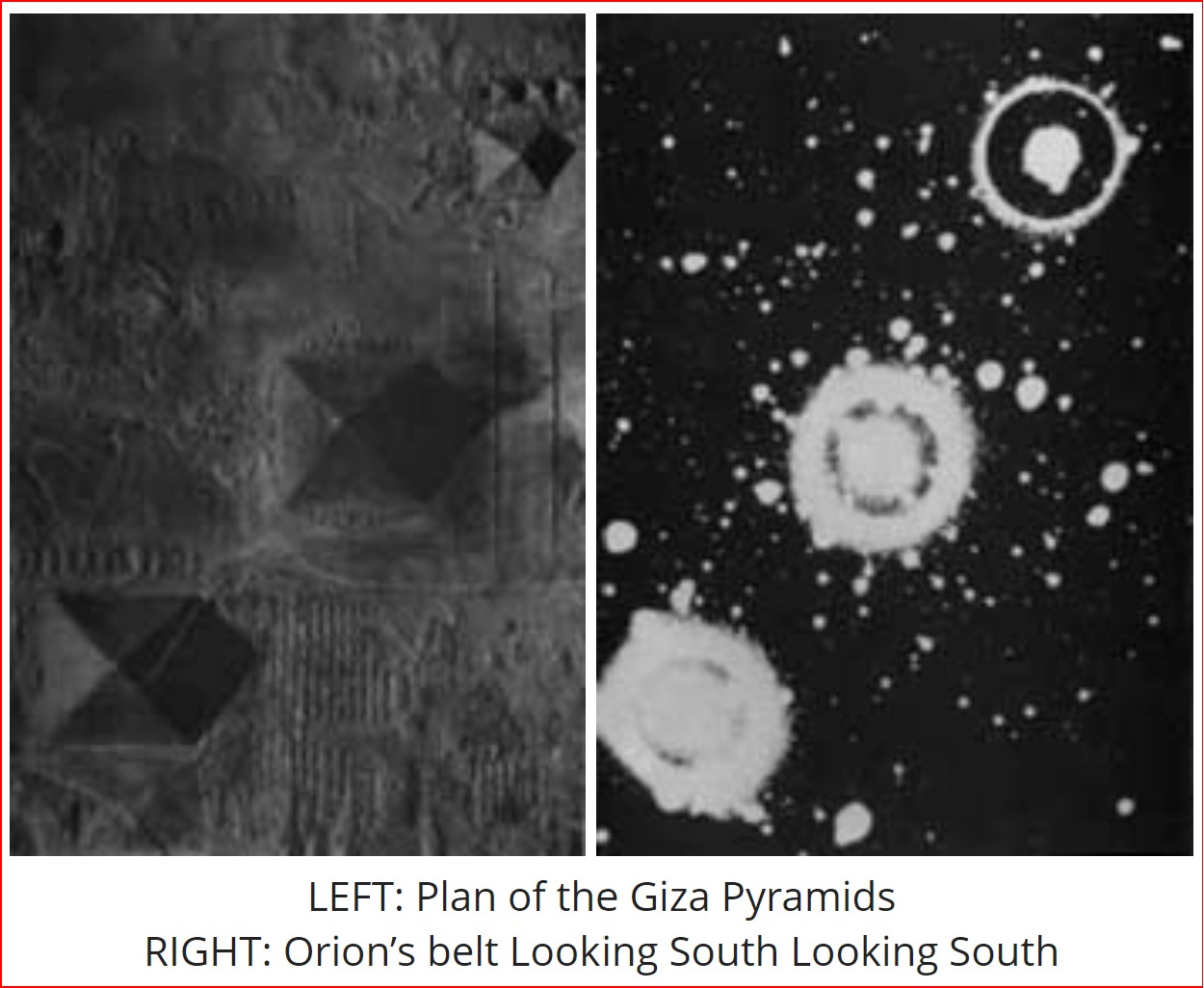 The reason I’m calling Alnitak the “Great Pyramid Star” has to do with the discovery by Robert Bauval in the late 1980’s that the shape of the belt stars of Orion closely resemble how the three main pyramids of the Giza plateau are platted.