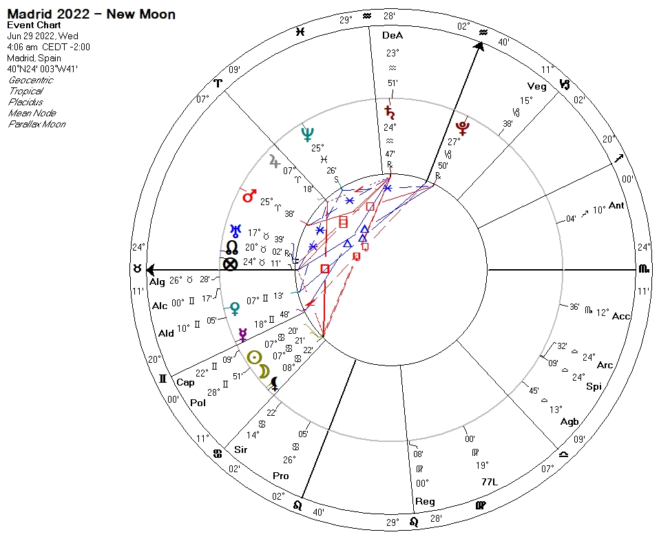 The dates for the Madrid summit are, again, June 29 and 30, and again we are at a new moon conjunction on the first day, conjunct the Black Moon (meaning that the moon is very close to apogee):