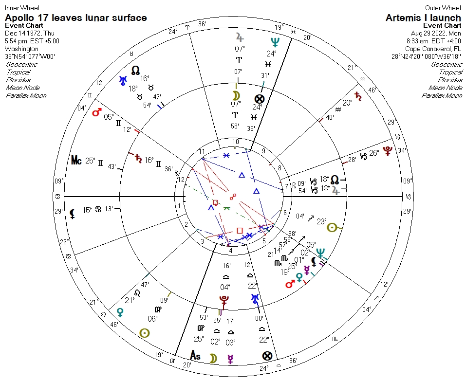Which brings me to the final chart, a bi-wheel for the final manned departure from the Moon – Apollo 17 – which took place on December 14, 1972, at 5:54 PM EST: