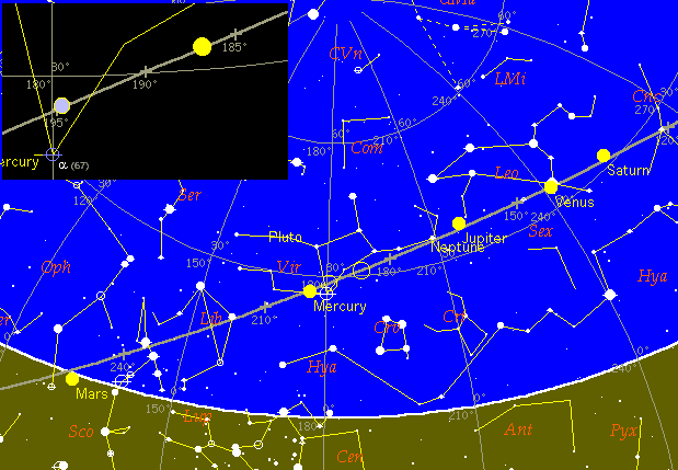 Earl William knew that even a book “carved in stone” could be pounded to dust, so he wrote his testament on the inviolable daytime sky, and hid it in the light. In “Rosslyn: Guardian of the Secrets of the Holy Grail”, by Tim Wallace-Murphy & Marilyn Hopkins, the authors claim that the site had been “revered by the Druids as the oracle of Saturn, the supreme Guardian of Secrets.” According to my research, it seems they are right. When Rosslyn was dedicated on September 21, 1450, the sun had risen exactly due east. Throughout the day, behind the sun and in exact alignment with the earth lay the planets Saturn and Neptune, a conjunction that occurs only once every 36 years. And they all rose invisibly in the light of day within the constellation Virgo, symbolic of various goddesses found in diverse astrological traditions.