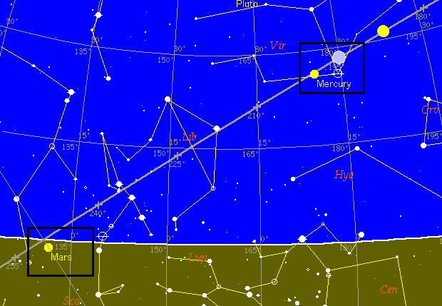 Furthermore, we can identify the dates and positions of Mars and plot them on this track: