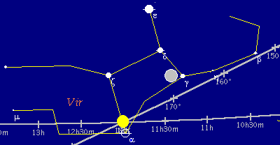 In the astronomical records of every age and race extant we find references to the constellation of the Virgin, and there is every reason to believe that it was one of the first star groups to receive a name. On the ancient maps, the Virgin is generally represented as a woman with wings, in a walking attitude. In her left hand she bears a bead of wheat, or ear of corn, which is marked by the brilliant first magnitude star Spica. … According to the poets, this Virgin was Astræus and Aurora, and the goddess of justice. Near her appear the Scales in which, it is said, she weighed the good and evil deeds of men. In the golden age she resided in the earth, but becoming offended as the wickedness of mankind she returned to heaven. Hesiod claimed that she was the daughter of Jupiter and Themis, and Aratos fives more space to the history of this constellation in his celebrated poem than to any other constellation. His account is as follows: