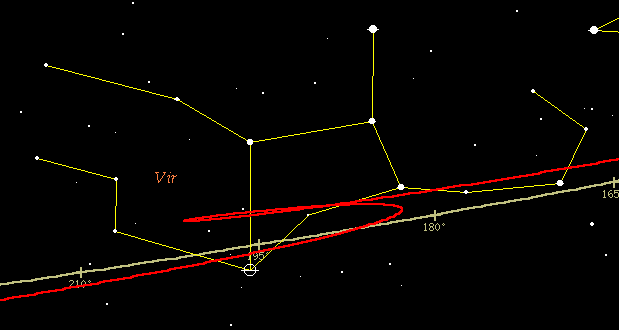 Furthermore, we can identify the dates and positions of Mars and plot them on this track: