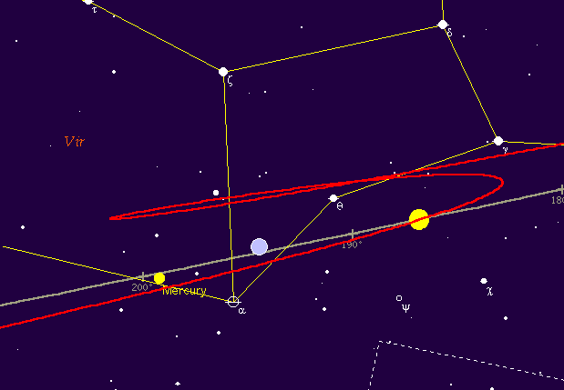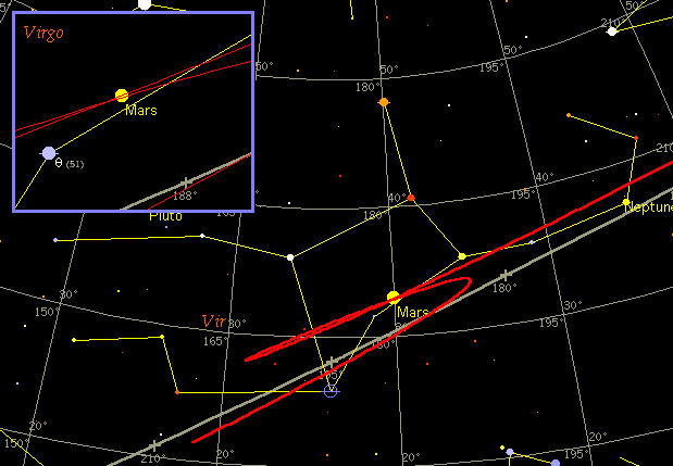 We can also see Mars in Virgo on the point where it returns to later when retrograde: