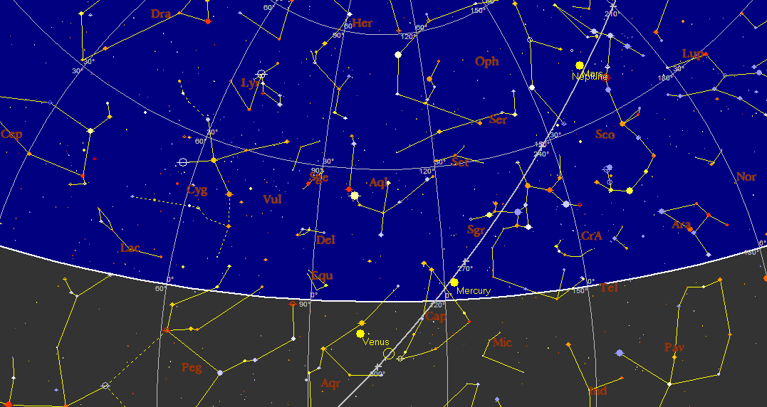 - August 22 through September 3 – Venus makes a close conjunction with Mercury.