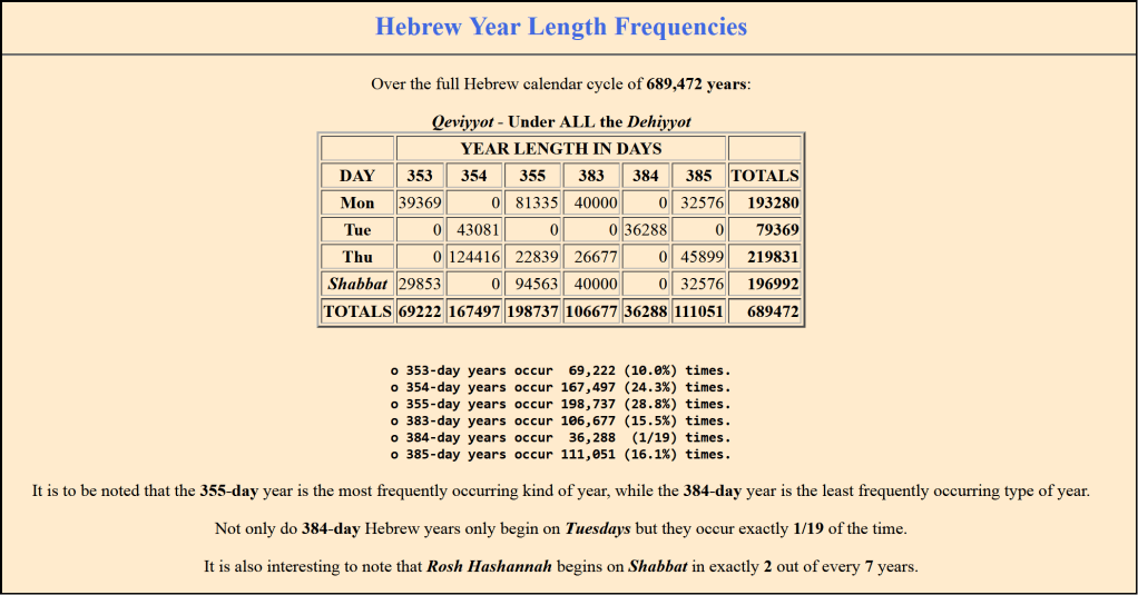 It should also be noted that in the Hebrew calendar scheme, years with 355 days occur most often, as shown by extrapolating the calendar math to the nth degree: