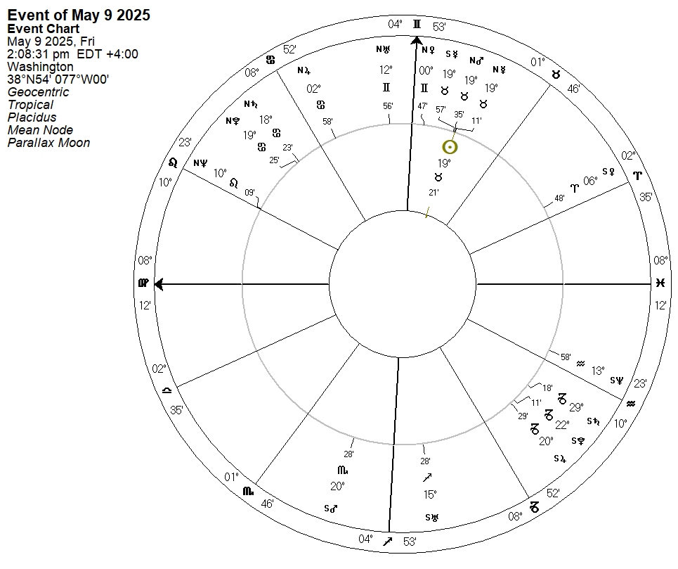 The other Mercury-Mars connection is with their nodes. The nodes of both planets conjoin every year around May 9 in the 20th degree of tropical Taurus: