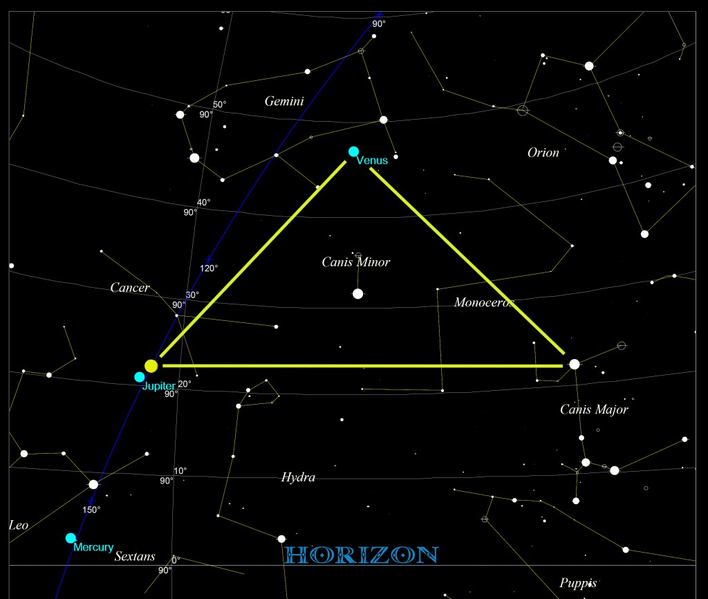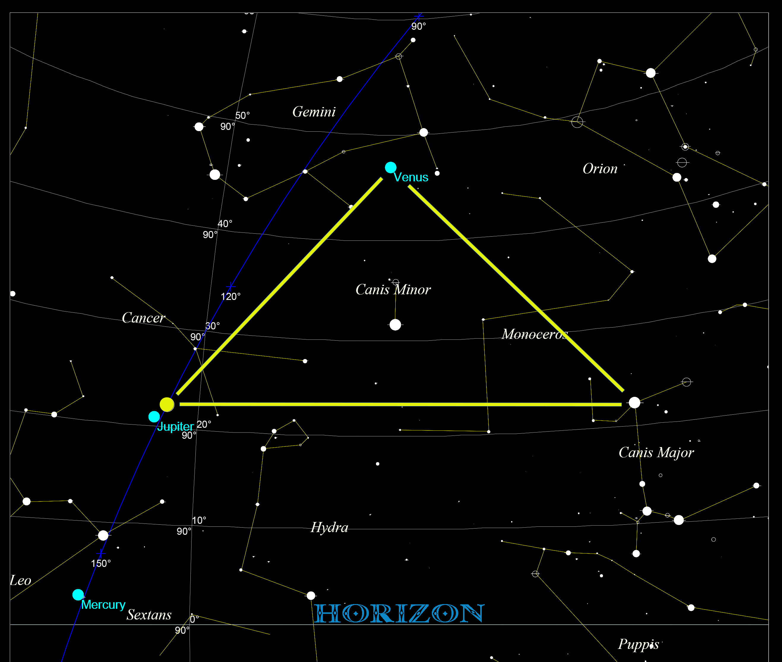A more detailed view; Procyon is in the center of the triangle: