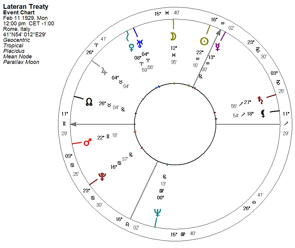 As it happens, I chose to lead off my entire tome, On the Exaltation of Mars, with a discussion about how Benedict XVI renounced his papacy on the 84th anniversary of the Lateran Treaty. It’s kind of a big deal for that Roman Catholic Church. The radix is hardly a secret: